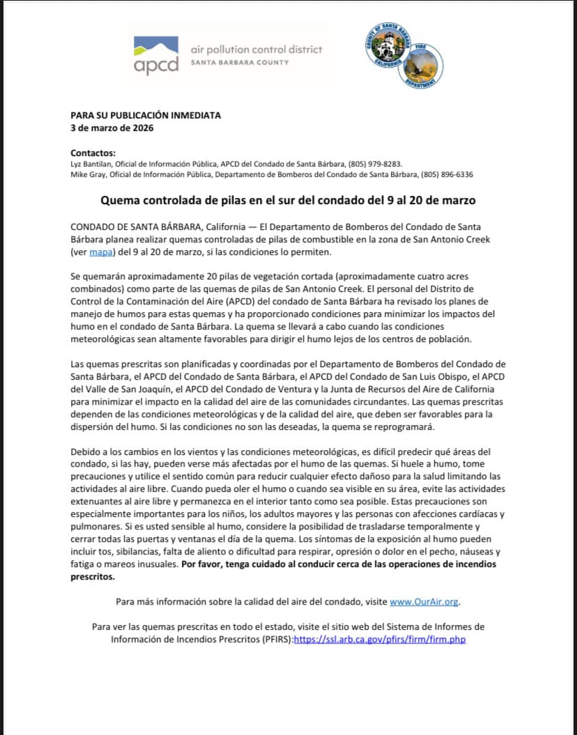 - Prescribed Pile Burns in South County Next Week / Quema controlada de pilas en el sur del condado del 9 al 20 de marzo